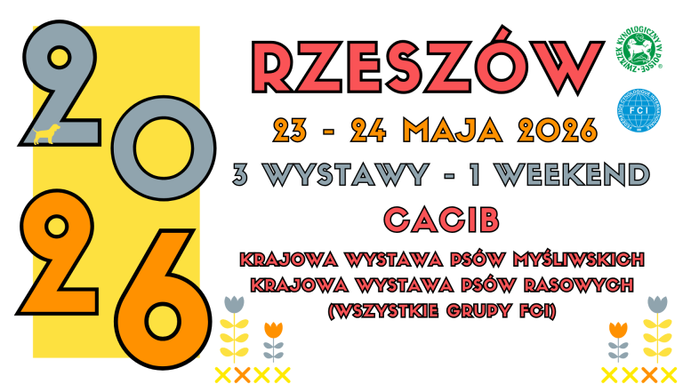 Związek Kynologiczny w Polsce Oddział w Rzeszowie serdecznie zaprasza w dniach 23 – 24 maja 2026 r. na: